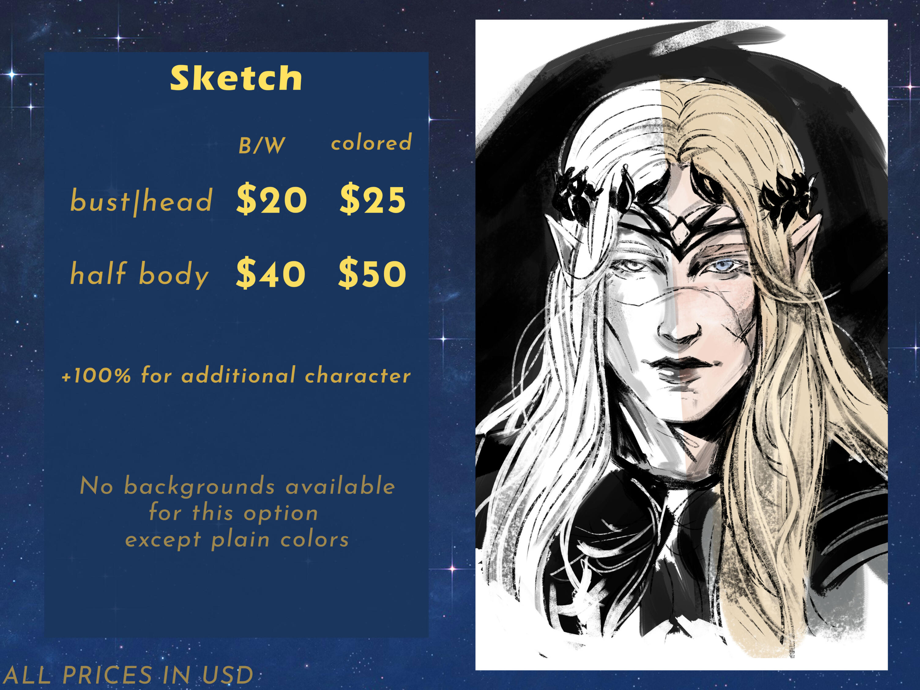 Type of commission (bust / half body / full body)